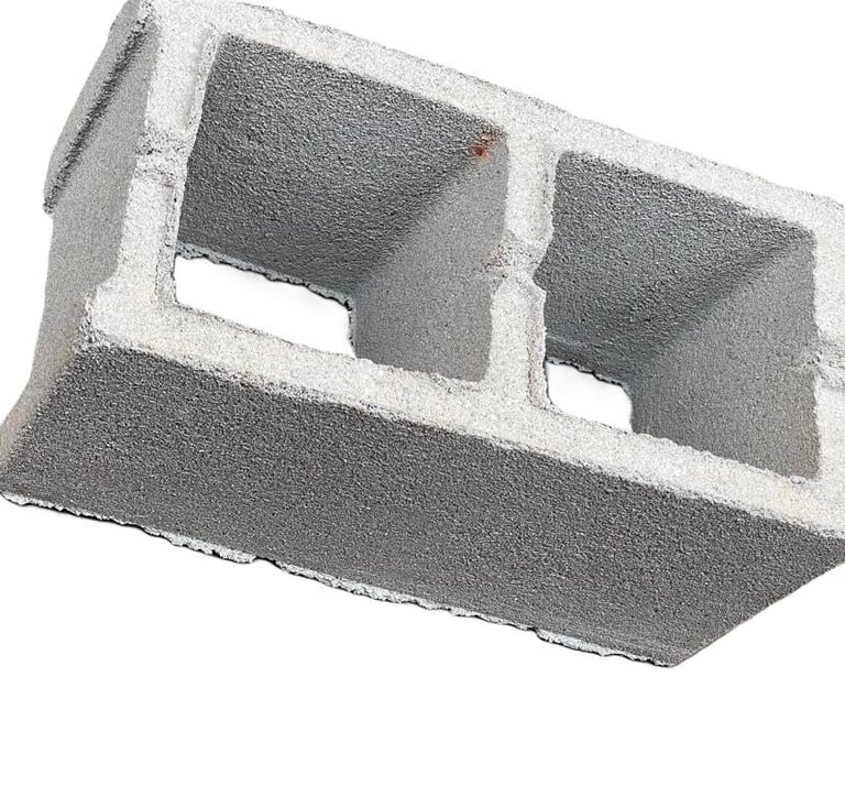 Hollow sandcrete blocks with distinctive properties of durability and strength.